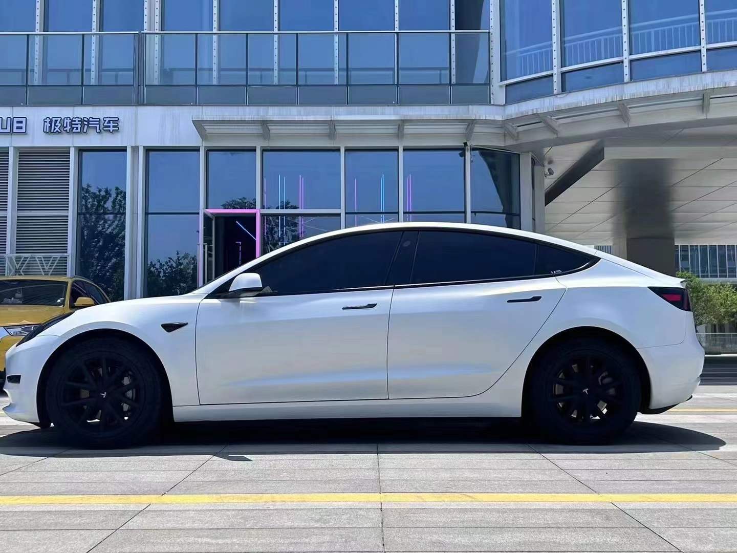 Using electro-white as the base color, it displays a blue sheen or gradient effect under different lighting conditions. In low light, the body primarily showcases the sleek and grand electro-white, exuding a modern technological feel. Under direct sunlight or strong illumination, the blue tone gradually emerges, ranging from a pale sky blue to a deep sapphire blue, blending with the white to create a dreamy, mysterious atmosphere, allowing the vehicle to exhibit unique charm in various settings.